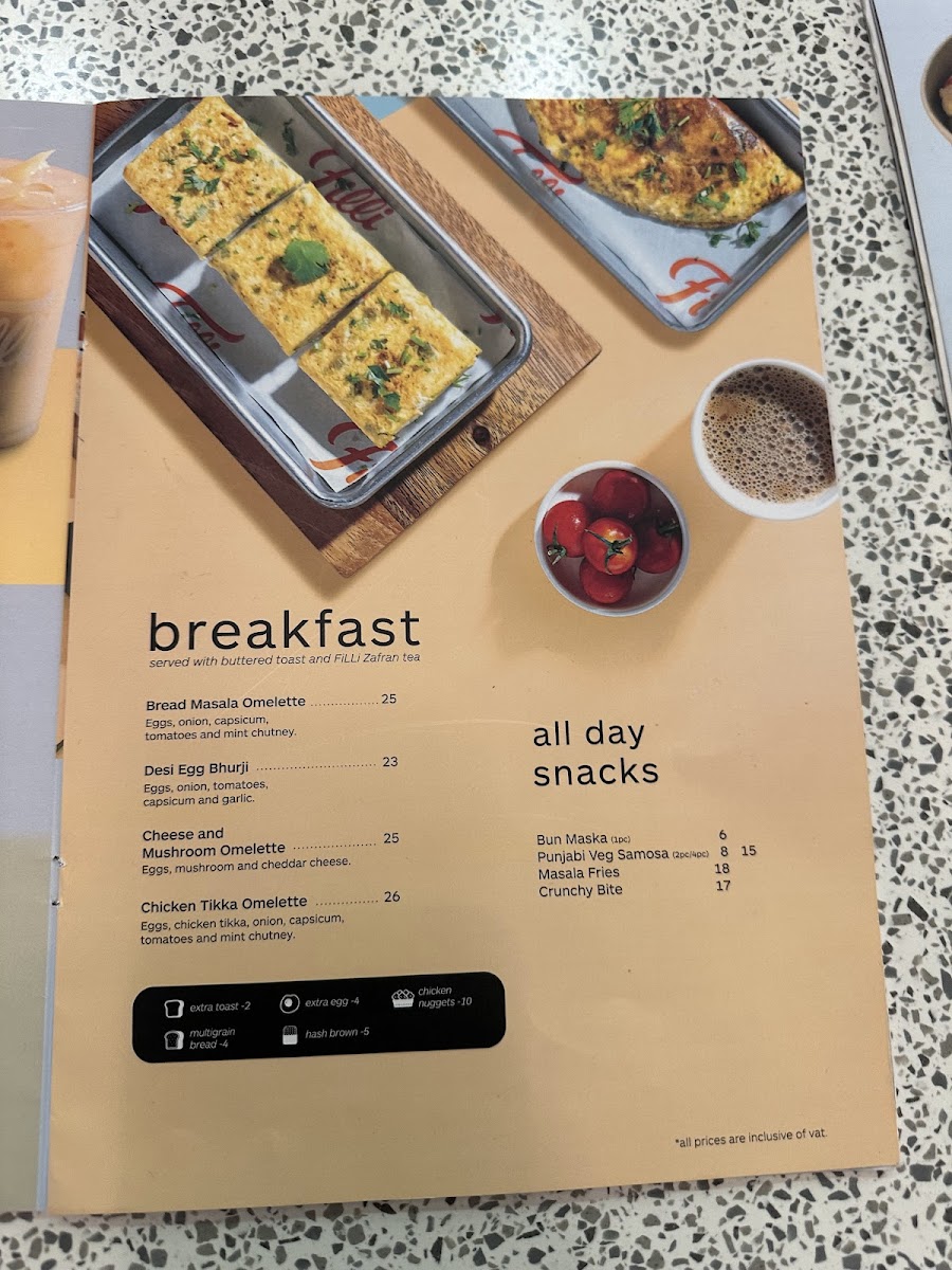 At Filli Cafe, the menu boasts a tantalizing array of beverages designed to cater to every palate. Savor the Kashmiri Gulab Chai, a soothing tea that transports you to the serene valleys of Kashmir with its floral notes, or experience the bold and invigorating essence of the Mumbai Cutting Chai, rich with the flavors of ginger, cardamom, and fennel, which is sure to revive your spirits. For those craving a sweet treat, the signature Caramel Macchiato – a delightful blend of smooth espresso and rich caramel – is a must-try.